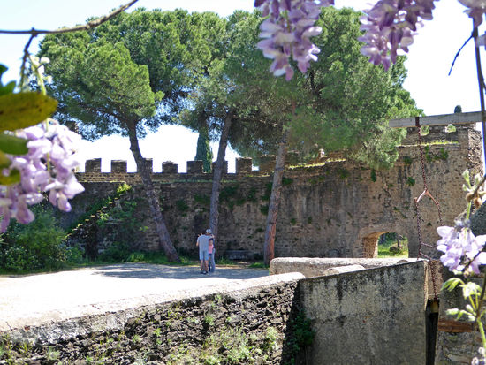 Den Eingang bildet das Knotentor – Porta do Nos – im Stil der Manuelik. Das Knotentor ist ein Rest der alten Stadtmauer des 16. Jh.s. Herzog Jaime ließ das Tor unter Verwendung von Marmor und Schiefer aus der Gegend errichten. Es besteht aus zwei Säulen, die durch drei Knoten verbunden werden und einer Inschrift, die auf die wachsende Bedeutung des aufsteigenden Adelsgeschlechts der Braganca anspielt. Uns gefällt dieses Portal sehr.