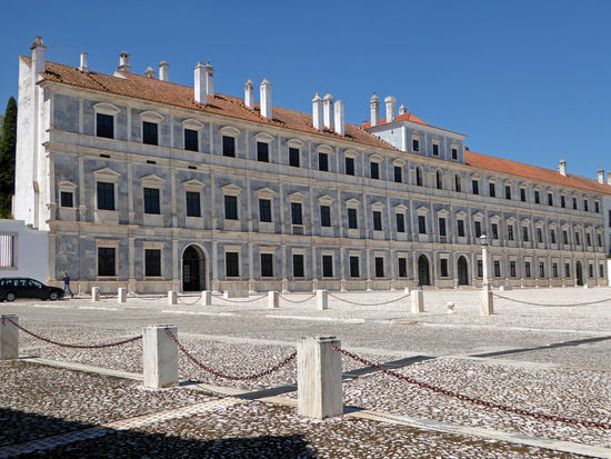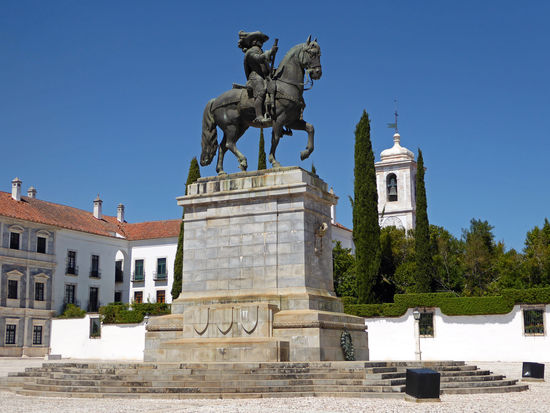 Auf dem monumentalen Schlossplatz kann man die Reiterstatue Joao IV. (aus Bronze) bewundern. Vor der Errichtung des Herzogpalastes diente der Platz als Stierkampfarena.
