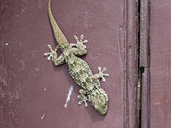 Wir wandern weiter, um die verfallene Burg herum. Am Portal, auch geschlossen, entdecken wir eine schöne Eidechse. Dieses Mal ist Rolf schnell genug für ein Foto.