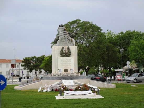 Am Markt werben Plakate für einen kommenden Stierkampf. Stierkampf, die so genannte "Atre Marialva" stellt den Kampf zu Fuß zwischen Stierkämpfer und Stier dar. In Portugal ist es seit dem 18. Jh. verboten, den Stier beim Stierkampf zu töten. Im Jahre 2002 erfolgte dann eine teilweise Gesetzesänderung, wobei das Töten des Stieres in der Arena in den Städten Barrancos und Monsarz aus kulturellen Gründen wieder gestattet wurde. Die Stierkampf-Saison beginnt jedes Jahr am Ostersonntag und endet im Oktober. Die Trachten der portugiesischen Stierkämpfer haben seit dem 17. Jh. keine Veränderungen erfahren. Die "Stierfänger" die nach dem eigentlichen Stierkampf vom Stier "auf die Hörner" genommen werden, kleiden sich noch genauso wie Ende des 14. Jahrhunderts.