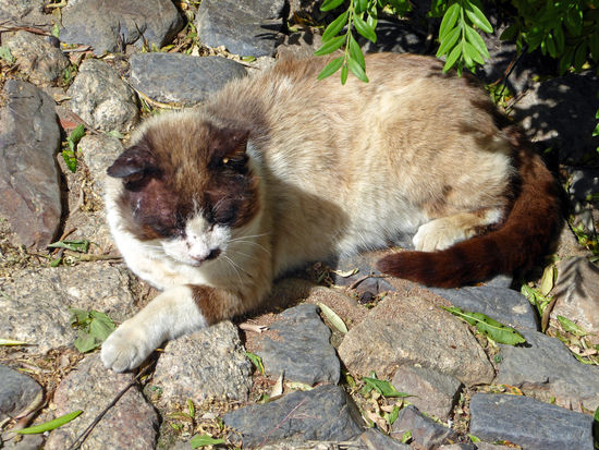 Eine hübsche Katze genießt die warmen Sonnenstrahlen. Auf unserem Rundgang durch den historischen Ortskern kommen wir an vielen prächtigen Häusern vorbei, geschmückt mit herrlichen schmiedeeisernen Balkonen und Türen.