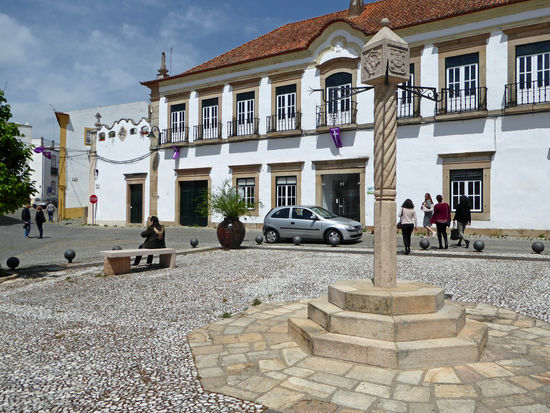 Wir fahren nach der Besichtigung und vielen Bildern weiter. In Crato halten wir auf dem Rathausplatz. Hier gefällt uns besonders der Palacio do Grao-Prior da Ordem de Malta aus dem 16. Jh. Und natürlich sind uns auch der Pelourinho und das Rathaus einige Bilder wert. Einige Mitarbeiterinnen der Gemeinde haben es sich auf den Stufen des Pelourinho gemütlich gemacht. Sie genießen die Sonne. Mir ist echt gesagt, mal wieder viel zu warm.