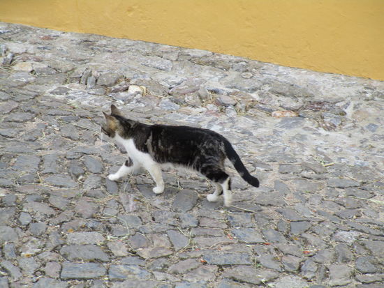 Der Eintritt im Castelo kostet nur 1 Euro. Von der Burg aus hat man einen herrlichen Blick über die Landschaft und den kleinen Ort. Rolf muss natürlich auf den höchsten Turm steigen. Er winkt mir zu, während ich einige Katzen des Ortes beobachte.