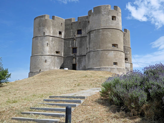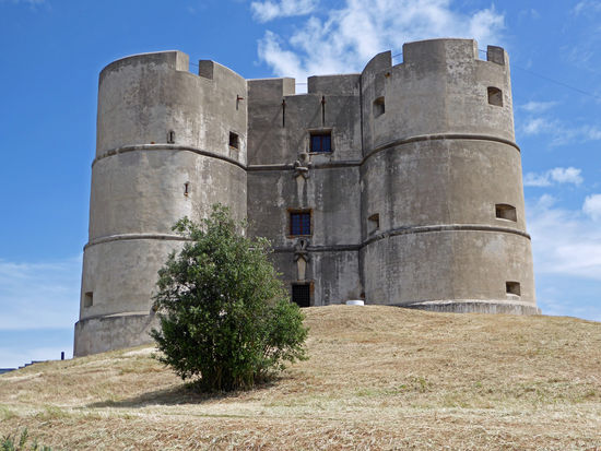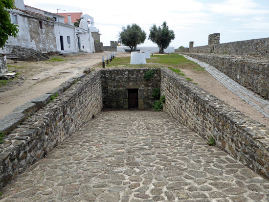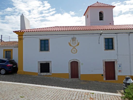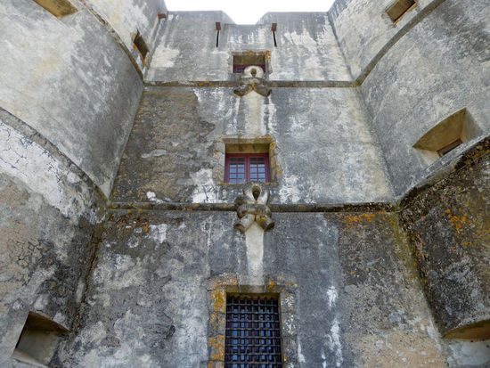 Diese an einen mittelalterlichen Bergfried erinnernde, massive symmetrische Burg mit vier Ecktürmen besitzt drei Geschosse. Von oben hat man bei entsprechendem Wetter eine ausgezeichnete Sicht über weite Teile des Alentejo. Zwei um die Fassade herumlaufende steinerne Taue, die in der Mitte der Fassade mit einem Knoten versehen sind, besitzen symbolische Bedeutung: Die Schlossherren kamen aus dem portugiesischen Königshaus Bragança.