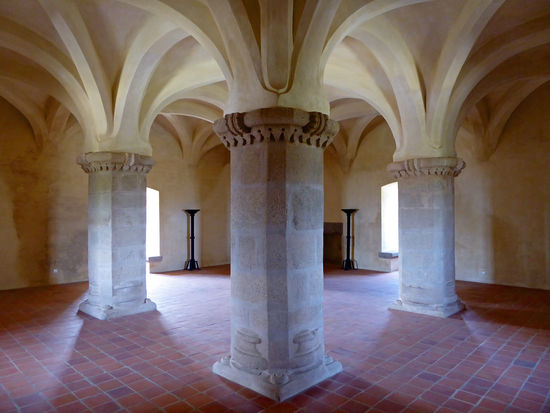 Die Ecken dieses Gebäudegeviert können durch Türme verstärkt sein. Oft findet sich ein zusätzlicher Mauerzug vor dem Gebäudekomplex, an dessen Ecken runde Bastionen ein Bestreichen der Seiten ermöglichten.