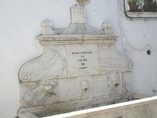 Beim Abstieg – unheimlich steil die Gassen – entdecken wir einen schönen Brunnen in der Nähe des Cafe Finalmente. Leider geschlossen, doch kurze Pause auf einer Bank und dann geht es weiter zum Praca da Republica mit Rathaus und Pelourinho. Der Platz ist von wunderschönen Häusern umgeben.