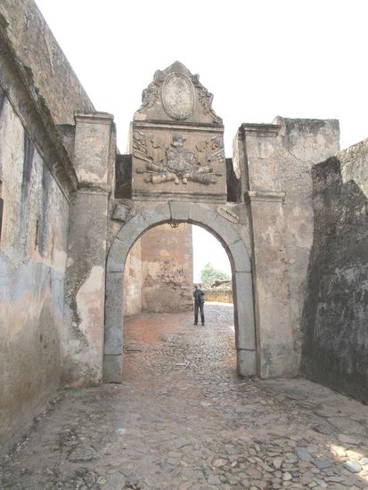 An den Befestigungsanlagen sieht alles etwas ungepflegt aus. Die Überreste des Castelos sind nicht zu besichtigen. Hinter einem Tor kläffen einige Hunde wie verrückt. Das wird noch verstärkt, als Herr Hass gegen das Tor klopft. Gut, dass die Tür gut verschlossen ist und die wütenden Hunde uns vom Leib bleiben.