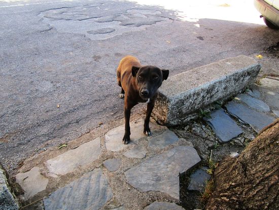 Durch die engen steilen Gassen hinab zur Brücke, mal wieder abenteuerlich. Auch hier zeugen die Häuser von der Armut der Bewohner. Ein schöner brauner Hund läuft uns eine zeitlang hinterher. Er scheint mir Hunger zu haben. Leider haben wir nichts dabei, was wir ihm geben könnten. Es gibt hier viele verlassene wilde Hunde, um die sich keiner zu kümmern scheint.