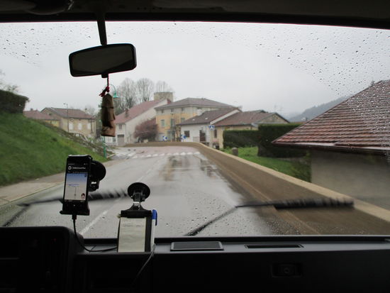 Weiter nach Nantua. Dort wird gebaut, wir müssen eine kleine Umleitung fahren. Von den Gemsen ist nichts zu sehen. Am Sylvan-See entlang. Es regnet leicht. Mich begeistern auf unserem Weg wieder einmal die herrlichen schattigen Baumalleen. Entlang der Straße sehen wir auch Gen-Maisfelder, Monsanto lässt grüßen!
