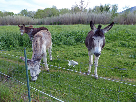Wir können draußen sitzen, in Gesellschaft vieler Esel. Zum Abendessen haben wir Pate, Schinken, Baguette, Tomatensalat, Wein. Später schauen wir noch einen Film an. Wie ich durch Zufall sehe, hat Rolf 4 Handys dabei – Vorsorge!