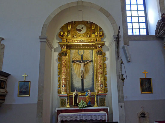 Hier oben auf dem Hügel, von dem man einen phantastischen Überblick über den Ort hat, befindet sich auch die Igreja Matriz. Das heutige Gebäude (Baubeginn1786) ersetzt die alte Kirche Igreja Sao Salvador aus dem 15. Jh., die bis 1785 völlig zerstört wurde.