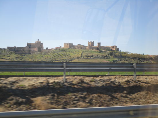 11.00 Uhr – Oropesa – Burg und Kirche sind auf einem Hügel zu sehen (Bild). 11.15 Uhr – wir kommen in die Extremadura. Kaum Verkehr, viel Sonnenschein.