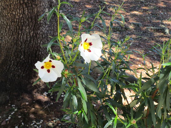 11.30 Uhr Almaraz – Atomkraftwerk. Sehr viel blühende Zistrosensträucher sind zu sehen. Zistrosen sind stark verzweigte, buschige Sträucher oder Zwergsträcuher mit aromatischem Harz, dem Labdanum.