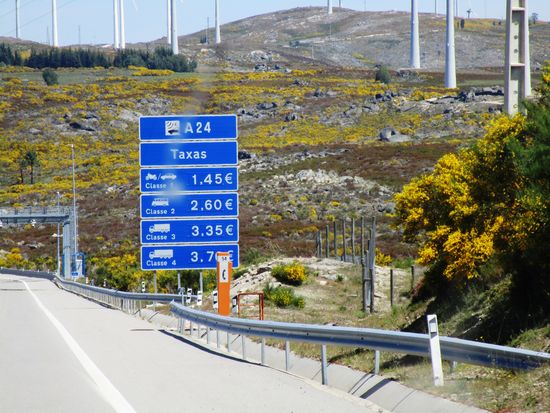 10.15 Uhr sind wir in Viseu. Von dort auf A 24 / E 801 Vila Real. Auf dieser Autobahn muss man zahlen. Es geht bergauf, bergab. Wir schleichen mit unserem langsamen Bus.