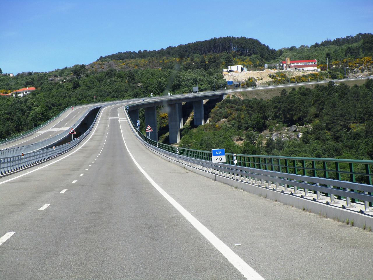 Die Autobahn A 4 überquert den Rio Corgo südlich von Vila Real auf dem Viaduto de Corgo, einer 2.796 m langen Schrägseilbrücke.