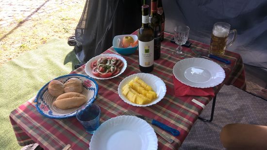 Zum Abendessen gibt es Sardinen, Lachs, Ananas, Tomatensalat, Brot, Äpfel und Wein. Obwohl es verboten ist, lässt ein deutsches Paar seinen Hund frei laufen und der will sich über unser Essen her machen. Geht ja mal gar nicht. Als ich was sage, sind sie beleidigt und verschwinden. Ich begreife solche Menschen nicht.