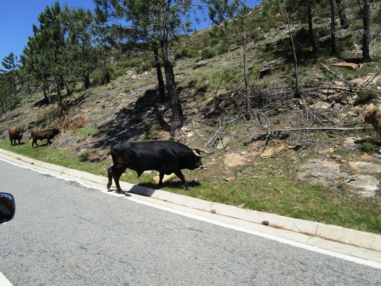 Dann stoßen wir auf eine Herde Cachena- Rinder, auch Stiere sind dabei, sehen alle furchterregend aus, sollen aber harmlos sein. Hoffentlich wissen die das, denke ich.