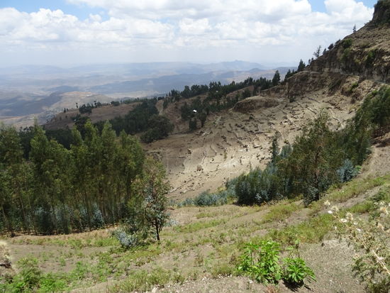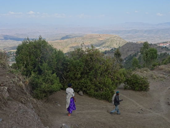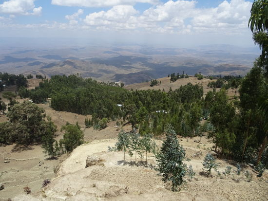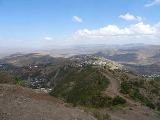 Inzwischen haben wir schon ganz schön an Höhe gewonnen. Unten auf ca. 2600 m ist Lalibela und die Felsenkirchen zu sehen.