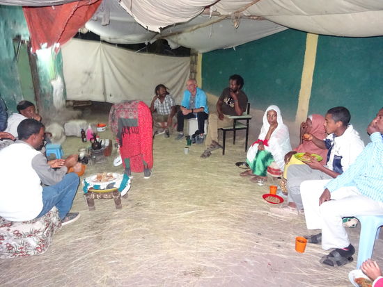 Am Abend sind wir wieder bei Happys Tante eingeladen. Matthias geht jedoch allein, da ich noch ein wenig ruhen will. Es ist wieder ein total geselliger Abend mit viel Injera, selbst gebrauten Bier und lokalem Bier. Es wurde noch immer Marias Geburt gefeiert. Das geht mehrere Tage lang. Happys Tante versorgt alle reichlich mit Essen. Sie sagt zu Matthias, sie könne ja mitkommen nach Deutschland und dort für ihn kochen. Doch als Matthias ihr etwas von unserer Kultur erzählt und das Familien dort nicht mehr so eng verbunden sind und für einander einstehen, will sie doch lieber in Äthiopien bleiben.
