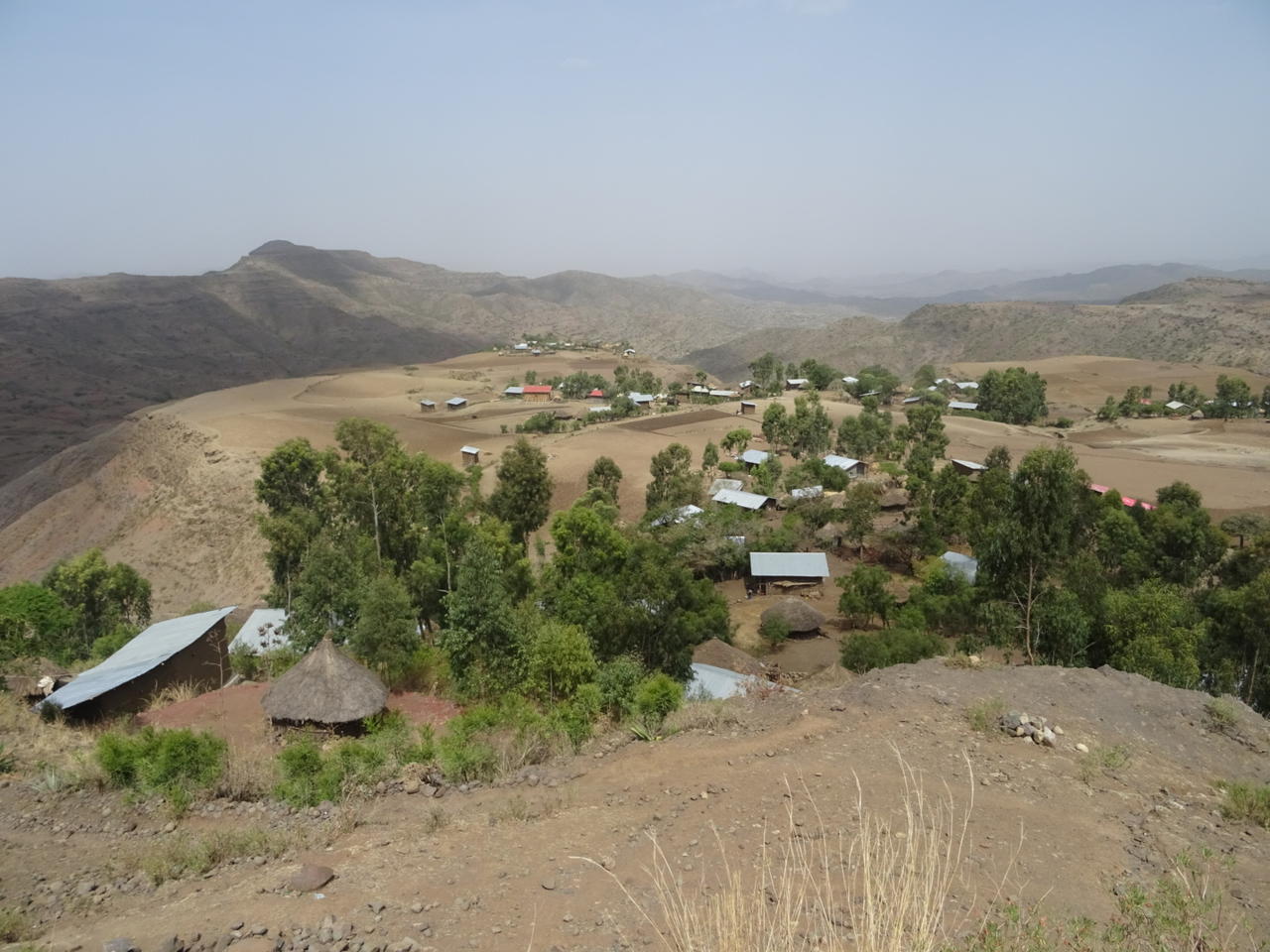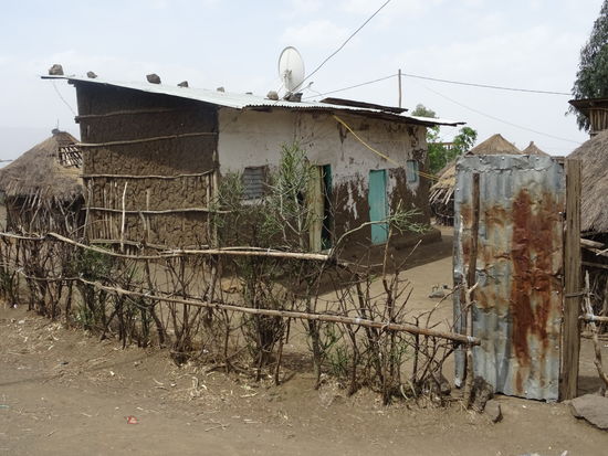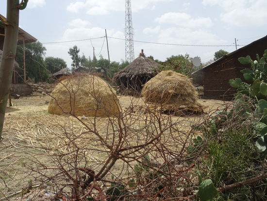 Hier ist im Vordergrund ein Brunnen zu sehen. Im Hintergrund die Tukuls, die noch sehr viel als Wohnraum genutzt werden.