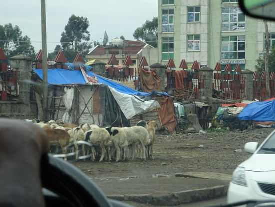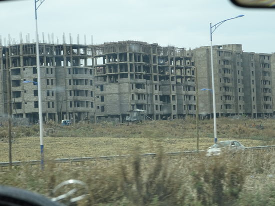 Heute ging es mit dem Auto zum Awash Park. Schnell wurde noch Wasser besorgt und dann ging es Stadtauswärts. Zunächst führte uns eine gut ausgebaute Autobahn aus die Stadt. Rechts und links der Straße entstehen Satteliten Städte und Industriegebiete. Bei vielen Bauvorhaben sind Chinesen die Investoren.