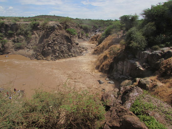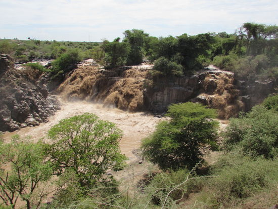 Der Fluss Awash ist neben den Flüssen Omo und blue Nil ein wichtiger Bestandteil der Wasserversorgung im Land. Durch ihn werden Tiere, Menschen und Landwirtschaft. versorgt. In den letzten Tagen hat es viel geregnet, daher ist der Wasserfall so schlammig. Auf der Fahrt zum Awash Park haben wir immer wieder wie die Menschen gesehen, die das Wasser mühsam aus den Pfützen schöpfen.
