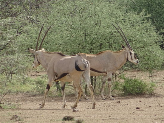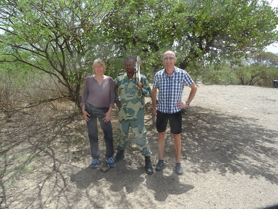 Gut gestärkt geht es mit dem Auto durch den Park. Unser Scout entdeckt die verschiedenen Tiere, die wir ohne ihn nicht immer wahrgenommen hätten. So sehen wir verschiedene Vögel, Oryx, Kudu, riesige Schildkröten, ein Dik Dik und ein Warzenschwein. Wir sind jedes mal begeistert.