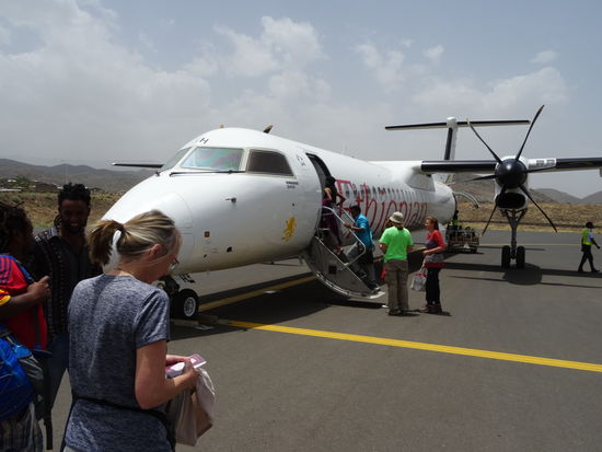 Heute Vormittag ist es nun soweit, die Rucksäcke sind gepackt und wir machen uns mit Joseph und Happy auf den Weg zum Flughafen. Noch einmal lassen wir die Verkausstände, kleinen Häuser und die vielen Baustellen an uns vorbei ziehen. Überall sind Menschen unterwegs. Die meisten beladen mit Wasserkanister, Holz oder ihrer Ernte. Ausserhalb der Stadt die vielen Felder, die jetzt so kurz vor der Regenzeit darauf warten bestellt zu werden. Im Hintergrund die einzigartige Bergwelt. Am Flughafen angekommen heißt es wieder Abschied nehmen. Noch eine Umarmung für Joseph und : " Take care for you and the children"!