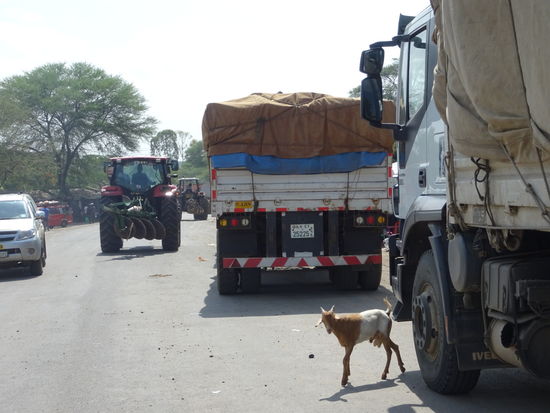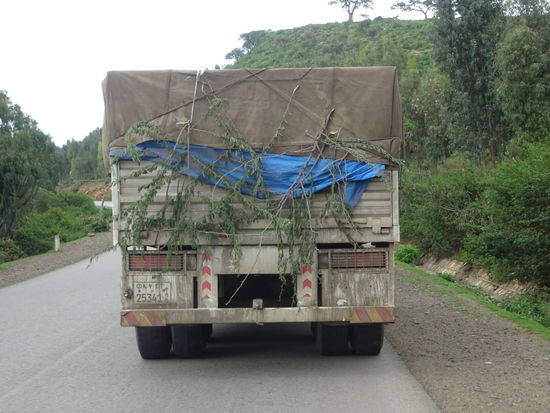 Ausser uns quälen sich unzählige LKW's die Berge hinauf. Die Rückseite der LKW'S ist oftmals mit dornigen Gestrüp behängt. So soll verhindert werden, das unliebsame Gäste aufsteigen und mitfahren.