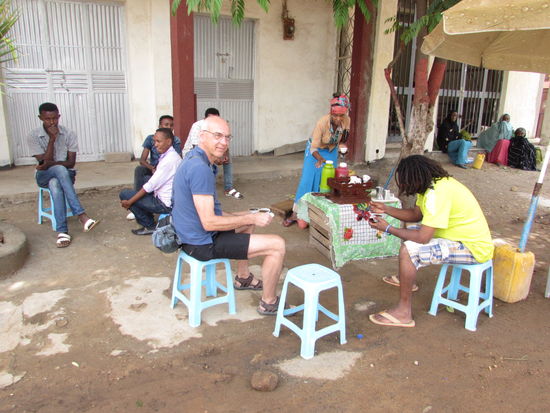 Kaffeepause in Babile und es gibt wieder einiges zu erzählen. Wir tauschen uns viel über die kulturellen Unterschiede aus. Unser Fahrer Musfin ist schon mehrfach in Deutschland gewesen und sehr offen in der Diskussion.