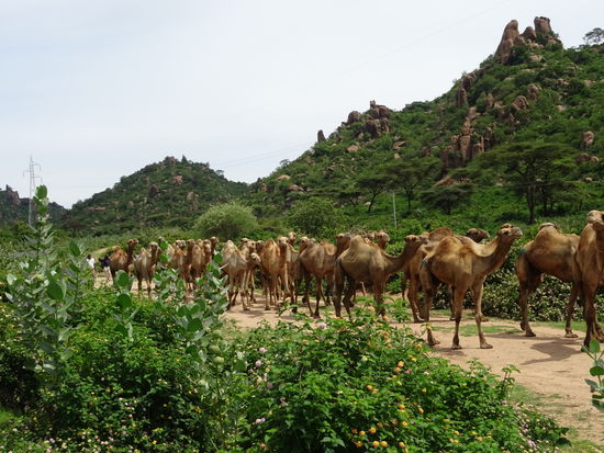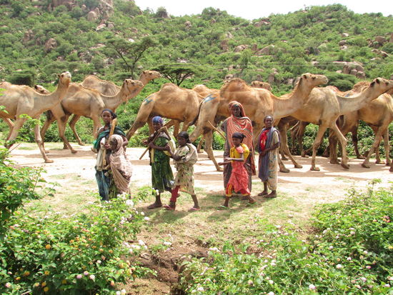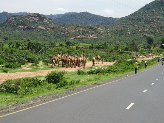 Wir befinden uns nun im Somalieland. In dieser Region sehen wir immer wieder große Kamel Herden. Diese dienen dem Transport der verschiedenen Güter und gleichzeitig sind sie Fleisch- und Milchlieferant.