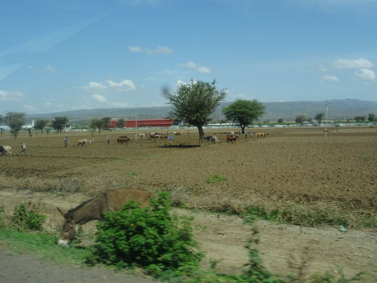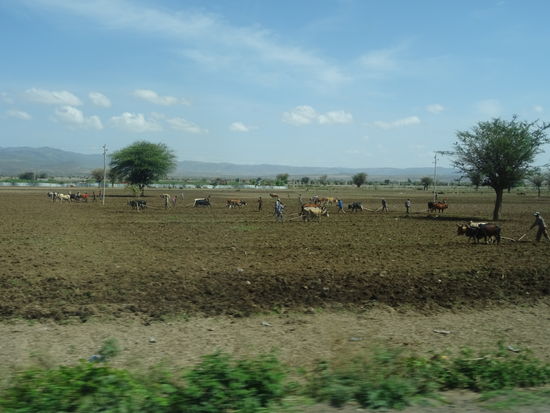 Dann sehen wir wieder große Flächen Ackerbau die mit unzähligen Ochsengespannen und Holzpflug beackert werden. In dieser Gegend haben wir keine Traktoren gesehen. Nicht selten werden die Ochsen von einem Kind geführt und ein erwachsener betätigt den Pflug. Wirklich körperlich harte Arbeit.