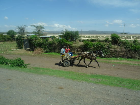 Heute liegen 210km bis Addis vor uns. Mesfin ist ein wirklich guter Fahrer und so können wir uns wieder ganz entspannt ins Auto setzen und die Fahrt geniessen, während er Schlaglöchern, Schafe, Kühe, Ziegen und Menschen stets geschickt ausweicht. Auf der Rückfahrt von Harar bis Addis werden wir von Happys Nichte und ihrer kleinen Tochter Efrat begleitet. Sie will nach Lalibela zu ihrer Familie. Da passte es sich gut bei uns mit zufahren.