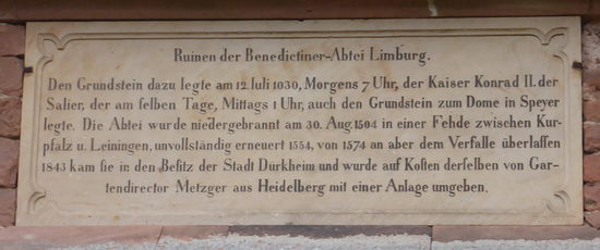 Von den Saliern zunächst als militärisch genutzte Burg Limburg genutzt, wurde sie ab 1025 als Hauskloster der Salier zu einer Abtei des Benediktinerordens mit Basilika umgebaut.