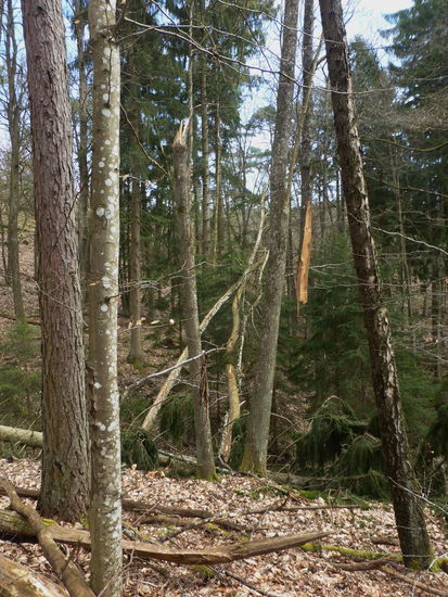 Danach steigt derPfad durch den arg mitgenommenen Wald – jede Menge Bäume entwurzelt und umgefallen – steil bis zur Naturfreundehütte, wo allerdings schon echt viel Betrieb ist.