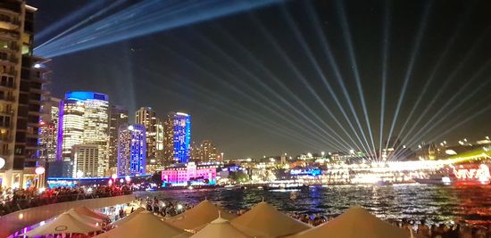 Anschließend zurück mit der Fähre gab es einen wunderbaren Blick auf die Skyline und der Himmel war auch wieder blau. Nun machte ich mich auf zur Oper. Langsam wurde es schon dunkel (17 Uhr). Hier war schon richtig was los. Um 18 Uhr startete die Lichtinstallation. Wow - die Brücke, die Oper. Ich folgte dann den ausgeschiderten Lichtwegen und kam durch den wunderschön beleuchteten Garten neben der Oper. Hinter jeder Ecke gab es eine neue Überraschung.