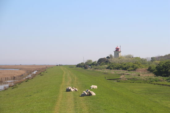 Immer auf dem Deich oder neben dem Deich entlang. Die Schafe hier haben fast alle Junge und wir fahren ein wenig Slalom um die Tiere. Immer wieder wird der Weg unterbrochen von Gattern und dank meiner freundlichen Begleitung wird mir noch nie so oft eine Tür aufgehalten wie heute