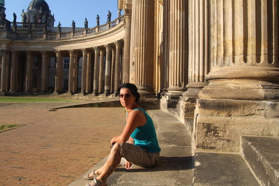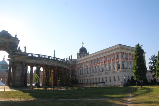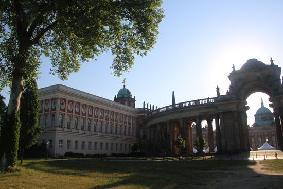 Einen kleinen Fotografier-Stopp in der Morgensonne mache ich beim Schlossgarten, Neues Palais, ein riesiger prächtiger Palast aus dem 18. Jahrhundert.