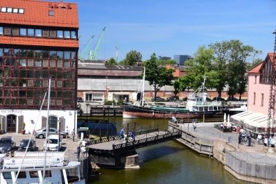 Diese Drehbrücke im Yachthafen von Klaipeda muss noch mit Muskelkraft bewegt werden