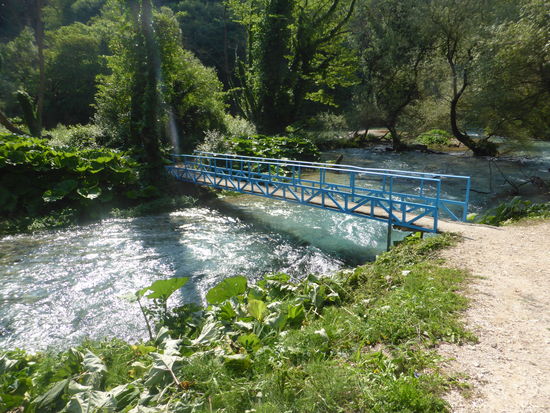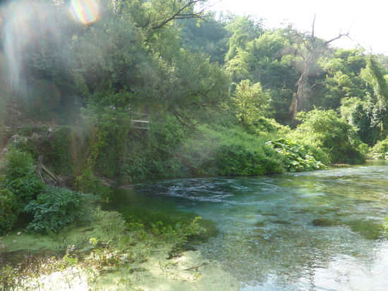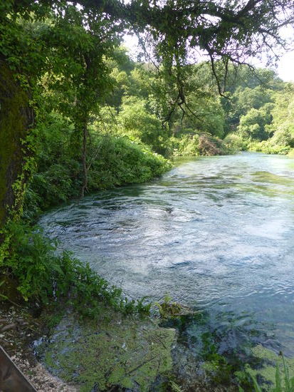 Die Karstquelle speist mit ca. 8 cbm Wasserausstoß pro Sekunde einen kleinen Fluß, der wenig später gestaut wird, um zu den 90% der Elektizitätsgewinnung durch Wasserkraft beiträgt.