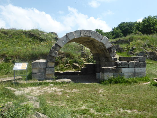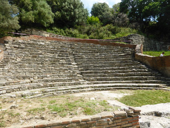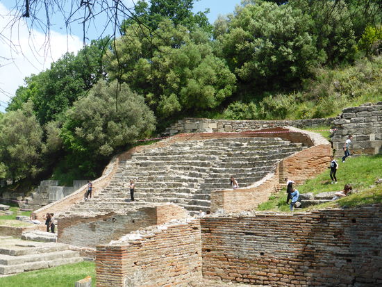 Während die zahlreichen Damen ein bestimmtes Örtchen aufsuchen, renne ich schon mal zu den beiden am besten aussehenden Ruinen und fotografiere sie nahezu menschenleer. Es bleibt sogar noch Zeit die Schautafeln, die nur auf albanisch und Englisch beschriftet sind, festzuhalten. danach macht Ivi eine interessante Führung, die ich nur teilweise mitbekomme, da nun eine ganze Jugendhorde um uns rumwuselt.