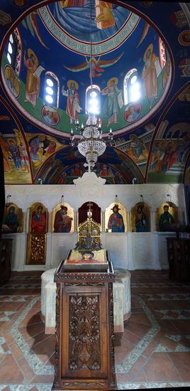 Das Innere der Kirche ist voller Fresken, die Szenen aus dem Leben Naums sowie denjenigen anderer Slawenapostel darstellen.
