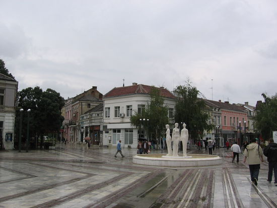 Nachdem wir nun schon so weit gefahren sind, lohnt sich umkehren ja auch nicht, schließlich will Horst ja auch Vidin sehen, eine Stadt zu besichtigen bei dem Regen ist wohl der einzig mögliche Zeitvertreib heute. Erst gegen 13 Uhr sind wir dort und können uns, wenn wir heute noch bei Tageslicht nach Belogradcik kommen wollen, gerade mal eine Stunde Stadtrundgang bewilligen es sei denn, wir finden hier ein Hotel. Das einzig Positive hier: Vidin liegt nur 20 m über dem Meeresspiegel, es sind fast 20 Grad, im übrigen aber regnet es ununterbrochen. Wir trennen uns, Krystof kämmt den Osten der Stadt ab und hält nach Übernachtungsmöglichkeiten Ausschau, ich haste mit Horst zu den Sehenswürdigkeiten, deren es so viele hier nicht gibt.