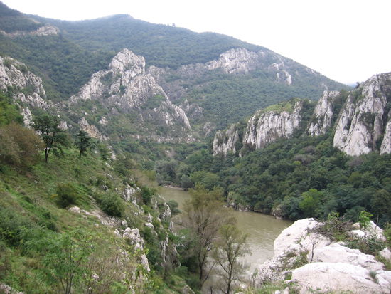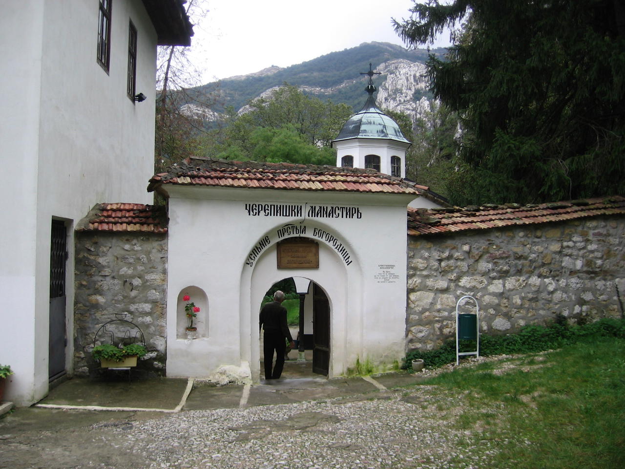 Der geplante Besuch in Ciprovci wird auf eine kurze Besichtigung des Klosters zusammengestrichen, damit wir heute wenigstens bis Sofia kommen. Dazu suche ich den kürzesten und landschaftlich schönsten Weg auf der Karte, der aber, wie sich dann herausstellt, nicht der schnellste ist. Aber er beschert uns eine grandiose Schlucht, an deren Eingang wir Picknick in einer Regenpause halten und ein paar Fotos schießen sowie ein weiteres Kloster, das eng an die Felsen geschmiegt wenige Zentimeter über dem Hochwasser des Flusses liegt. Bei Sonne müßte dieser Weg fast schon ideal zum Radeln sein, von der stetigen Steigung mal abgesehen. Bis Sofia sind es gerade einmal 100 km, aber wir bringen den ganzen Nachmittag damit zu, so dass wir ausgerechnet bei Einbruch der Dunkelheit in Sofia ankommen.