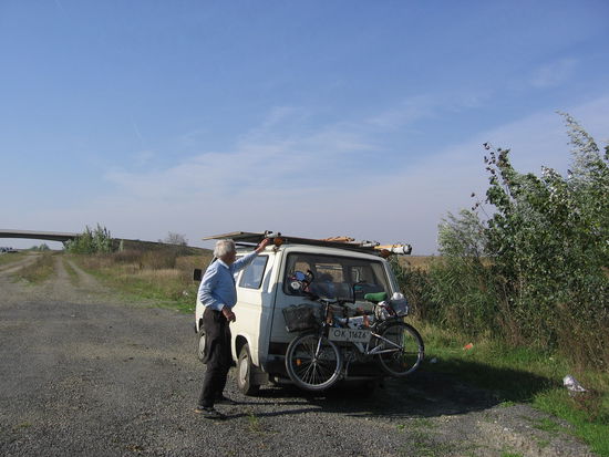 Um 12 Uhr starten wir unwideruflich nach Norden, und auf der Autobahn schaffen wir wieder Etappen, von denen wir auf dem Hinweg nur geträumt hätten. Aber obwohl die Autobahn nur selten vierspurig fertig ausgebaut ist, wird Maut kassiert, und zwar kräftig. Für die gut 170 km bis zur ungarischen Grenze bei Szeged werden wir erneut 28 Euro Maut los. Das letzte, halbwegs billige Tanken (83 cent/l) vor der Grenze ist da nur ein schwacher Trost. Aber dass wir in Ungarn reingelassen werden, ohne dass wir unsere Klamotten auspacken müssen, und das beim Übertritt durch die EU-Außengrenze, das erstaunt und erfreut uns doch. So kommen wir noch weitere 50 km ins Land bis 75 km vor Budapest und finden in ein preiswertes Nachtquartier.