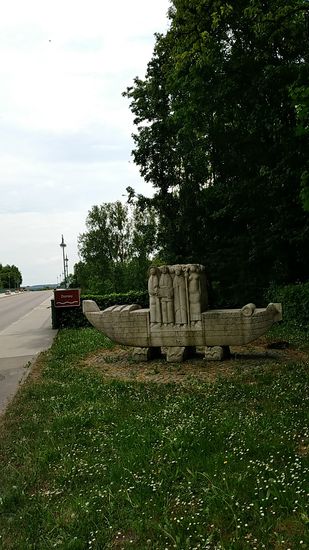 Inschrifttafel an der Skulptur über die damals geschehene Entscheidungsschlacht.