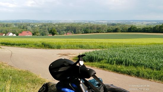 Noch dazu hörten diese sporadischen Regentropfen auch kurz nach der Gegend um Höchstädt auf und um es hier schon einmal vorwegzunehmen, blieb die komplette anschließende Radferntour trocken mit dem zusätzlichen Vorteil dieses ersten Rolltages, daß mich ein angenehmer Rückenwind unterstützte.