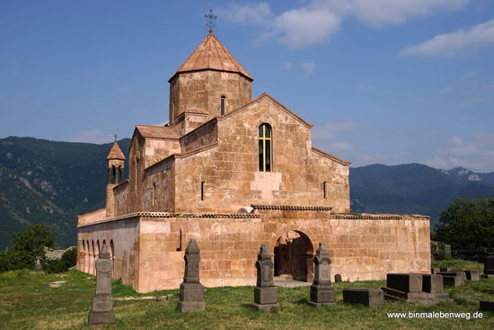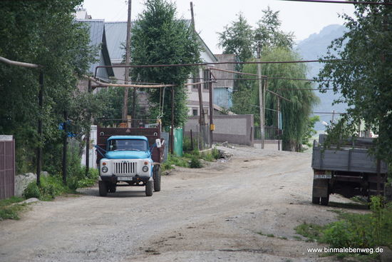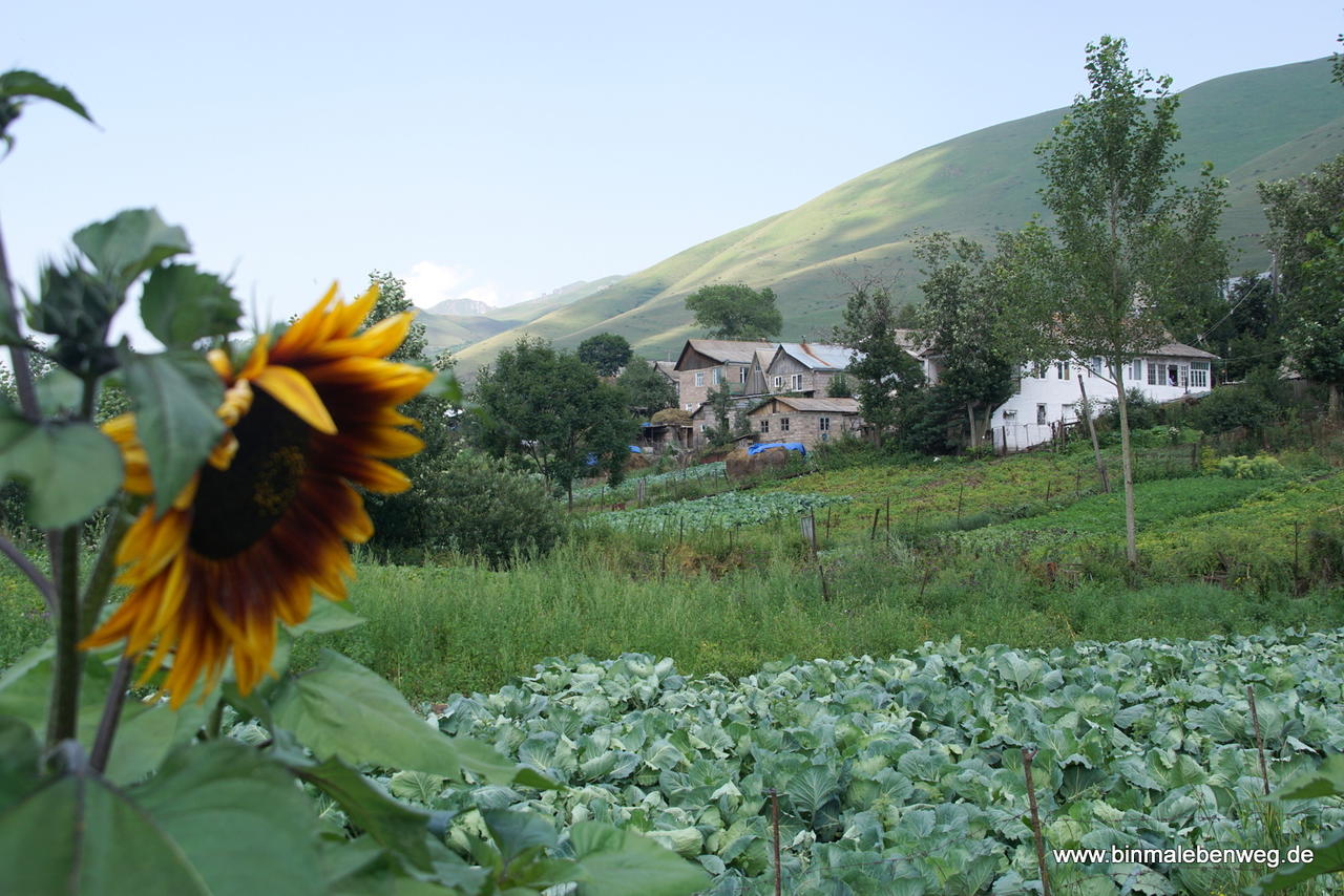 Nach dem Frühstück bringt uns der geländegängige Kleinbus weder ins Tal runter. Wir fahren zu den Urchristen, auch Molokanen genannt, ins Dorf Fioletovo. In der Sowietära wurden die Molokanen nach Armenien zwangsumgesiedelt. Trotzdem empfanden sie diese Zeit nicht als allzu schlimm, Probleme bereitete ihnen vor allem, dass sie in der Sowchose oft Sonntags arbeiten mussten, was den Vorgaben ihrer Religion vollkommen widersprach.