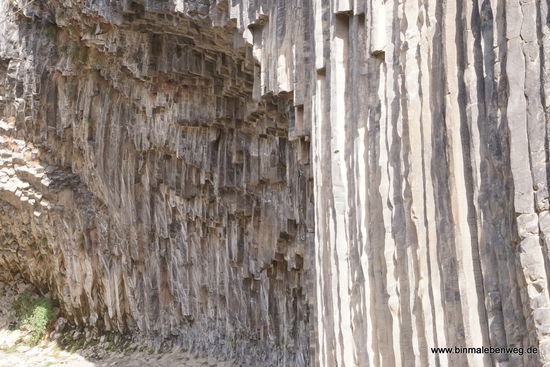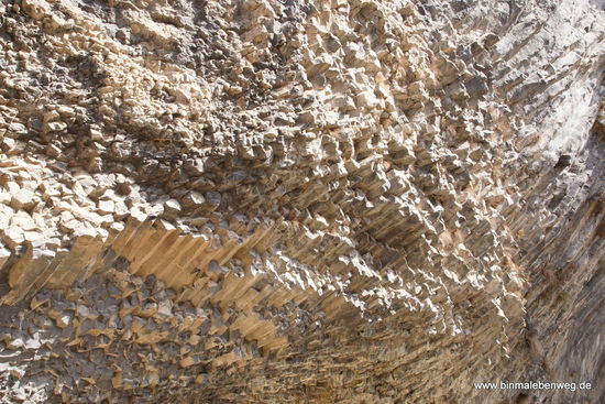 Wenn man vor den gigantischen, meist sechseckigen Basaltsäulen steht, kommt einem gleich zwei Begriffe in den Kopf: „Orgelpfeifen“ und „Sinfonie“ – und tatsächlich haben die Felsen den Spitznamen „Sinfonie der Steine“. Zu Recht! Und gerade beim Blick von unten wähnt man ich vor einer gigantischen Orgel.