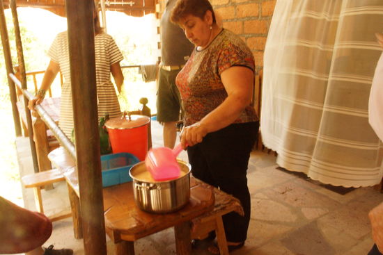 Zum Mittagessen machen wir Halt beim Bauernhof der Familie Vargas. Frau Vargas macht frischen Käse für uns, der rund 20 Minuten, nach den er angesetzt wurde, bereits verzehrfertig ist, als Nachtisch quasi. Was ist Völkerverständigung? Wenn sich das Beste aus zwei oder mehr Kulturen miteinander vermischt. Wir streuen Zucker auf den Käse, den wir in dieser Form nicht wirklich kennen, streuen testweise Zucker oben drauf und die Armenier merken, dass diese Kombination auch spannend ist… Vor dem Nachtisch gab es verschiedene Salate, Rührei vermischt mit Tomaten oder gegrilltes Hühnchen.